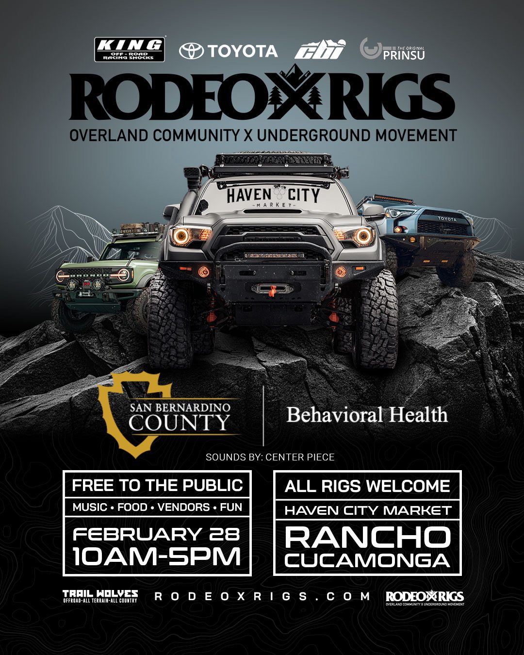 The Department of Behavioral Health will be present during the Rodeo X Rigs - Overland Community X Underground Movement. This event is free to the public and will include: Music,...