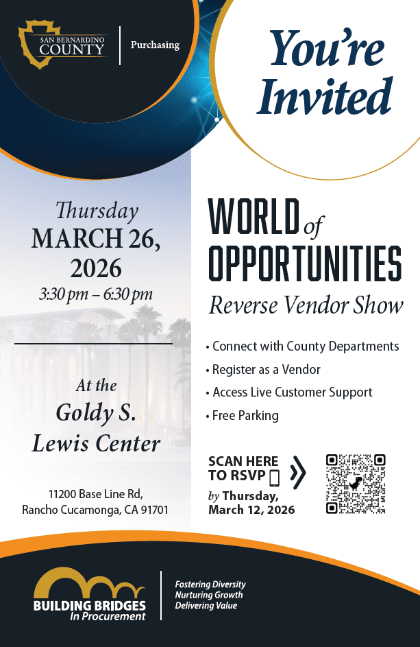 Learn how to do business with San Bernardino County to sell products and services as a vendor.